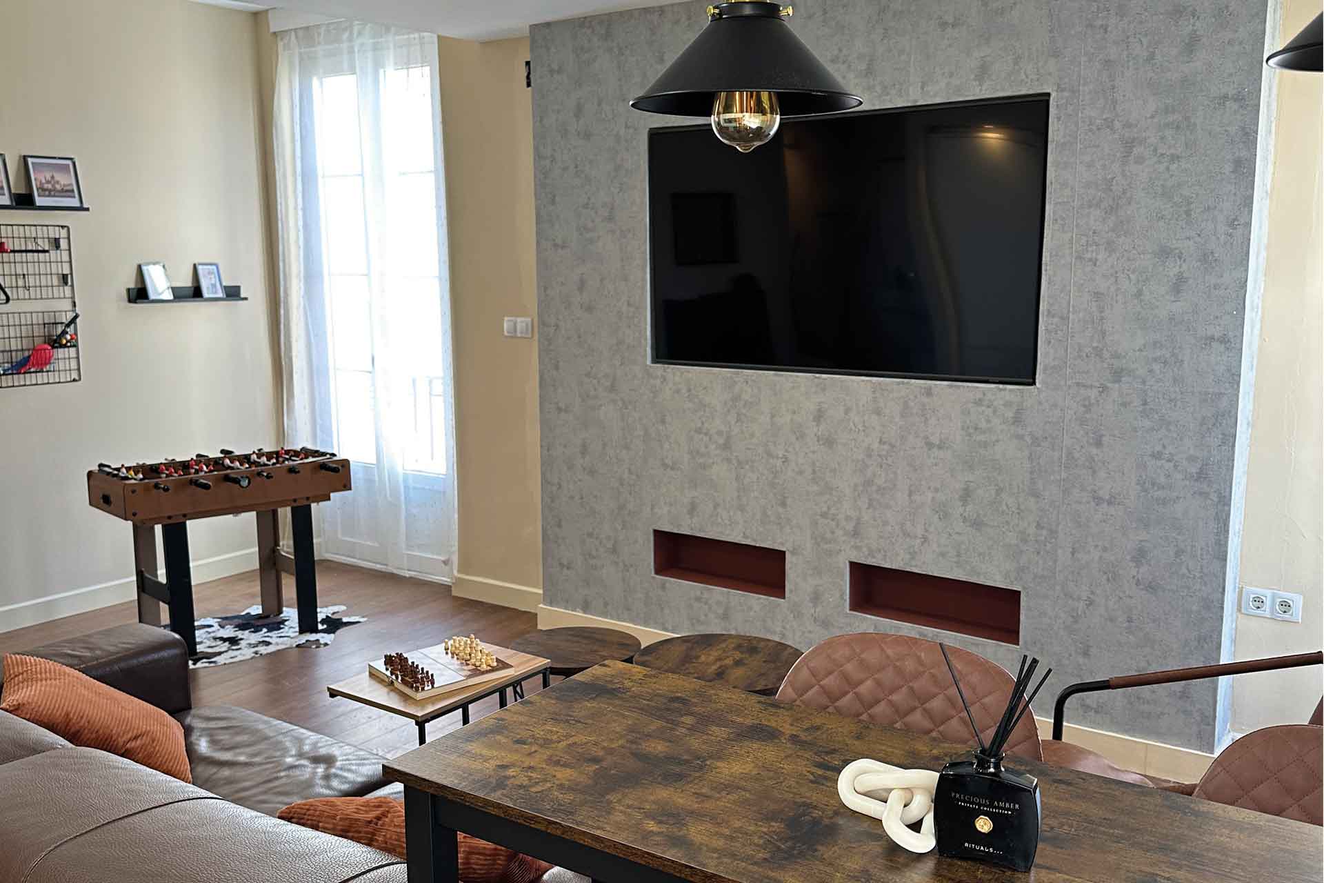 Este apartamento tiene 3 dormitorios, cocina con nevera y horno, TV de pantalla plana, zona de estar y 2 baños con bidet. Hay toallas y ropa de cama en el apartamento.